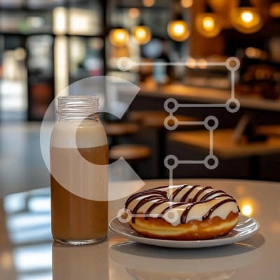 Υπάρχει δυνατότητα προσωποποίησης με δική σας φωτογραφία και προσαρμογής διαστάσεων κατόπιν παραγγελίας. Το συγεκεριμενο puzzle παρουσιαζει Η εικόνα παρουσιάζει ένα ρουστίκ περιβάλλον καφέ με ένα γυάλινο μπουκάλι γεμάτο με ένα κρεμώδες ρόφημα δίπλα σε ένα νόστιμο ντόνατ. Το ντόνατ στολίζεται με μια παχιά στρώση λευκού γλάσου και περιχύνεται με σοκολάτα, ακουμπώντας σε λευκό πιάτο. Το φόντο είναι απαλά θολό, αποκαλ