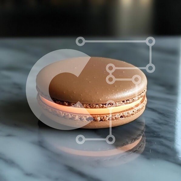 Υπάρχει δυνατότητα προσωποποίησης με δική σας φωτογραφία και προσαρμογής διαστάσεων κατόπιν παραγγελίας. Το συγεκεριμενο puzzle παρουσιαζει Η εικόνα παρουσιάζει ένα μακαρόν σοκολάτας, κομψά τοποθετημένο σε μαρμάρινη επιφάνεια. Το μακαρόν έχει ένα λείο, γυαλιστερό εξωτερικό με πλούσιο καφέ χρώμα, που συμπληρώνεται από μια πορτοκαλί γέμιση που κρυφοκοιτάει μέσα από το σάντουιτς. Ο φωτισμός τονίζει τη γυαλιστερή γυαλ