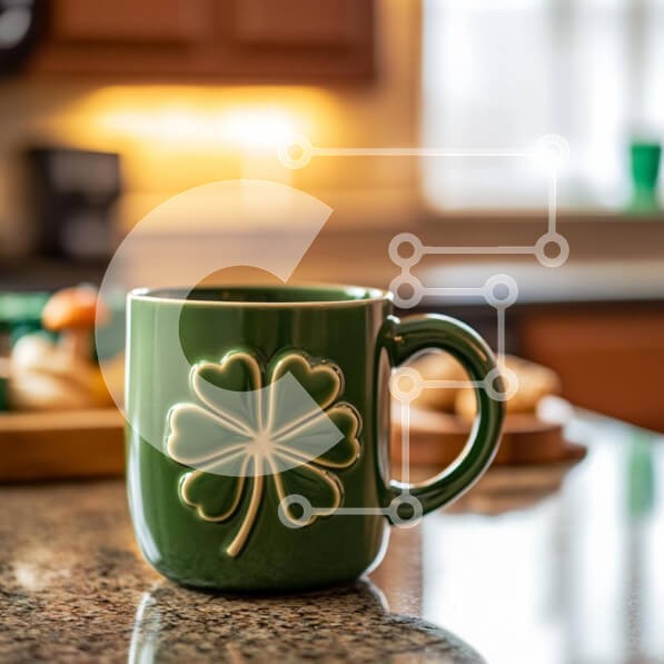 | Όνομα Προϊόντος | Σετ των 2 Intra Συλλεκτικό Ξύλινο Παζλ Plywood 4mm - Πράσινη κούπα με σχέδιο τετράφυλλου τριφυλλιού στον πάγκο της κουζίνας Σε Ξύλινο Κουτί - Διαστάσεις: 10x10 cm – 25 κομμάτια |