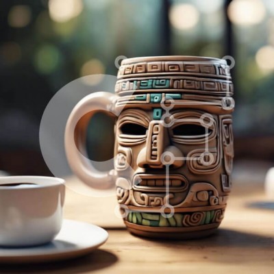 Υπάρχει δυνατότητα προσωποποίησης με δική σας φωτογραφία και προσαρμογής διαστάσεων κατόπιν παραγγελίας. Το συγεκεριμενο puzzle παρουσιαζει Η εικόνα παρουσιάζει μια κούπα καφέ με σχέδιο εμπνευσμένο από τους Αζτέκους. Τοποθετείται δίπλα σε δύο φλιτζάνια καφέ, το ένα από τα οποία φαίνεται να είναι φρεσκοκομμένο. Υπάρχουν επίσης πολλά ασημικά στο τραπέζι, όπως κουτάλια και πιρούνια. Ένα μοναδικό puzzle που συνδυάζει