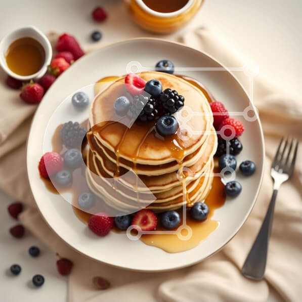 Υπάρχει δυνατότητα προσωποποίησης με δική σας φωτογραφία και προσαρμογής διαστάσεων κατόπιν παραγγελίας. Το συγεκεριμενο puzzle παρουσιαζει Αυτή η εικόνα παρουσιάζει ένα πιάτο με νόστιμες τηγανίτες με σιρόπι και μια ποικιλία από φρέσκα μούρα. Οι τηγανίτες είναι αφράτες και χρυσοκάστανες, ενώ το σιρόπι γυαλίζει ελκυστικά. Τα ζωηρά κόκκινα και μοβ μούρα προσθέτουν χρώμα και φρεσκάδα στο πιάτο, δημιουργώντας μια οπτι
