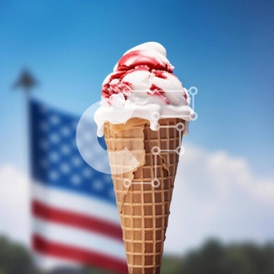 Υπάρχει δυνατότητα προσωποποίησης με δική σας φωτογραφία και προσαρμογής διαστάσεων κατόπιν παραγγελίας. Το συγεκεριμενο puzzle παρουσιαζει Η εικόνα δείχνει ένα λαχταριστό παγωτό σε χωνάκι βάφλας με κόκκινο και λευκό γλάσο, συνοδευόμενο από μια αμερικανική σημαία στο φόντο. Πιθανότατα καταγράφει μια απολαυστική στιγμή κατά την επίσκεψη κάποιου στις Ηνωμένες Πολιτείες της Αμερικής. Ένα μοναδικό puzzle που συνδυάζε