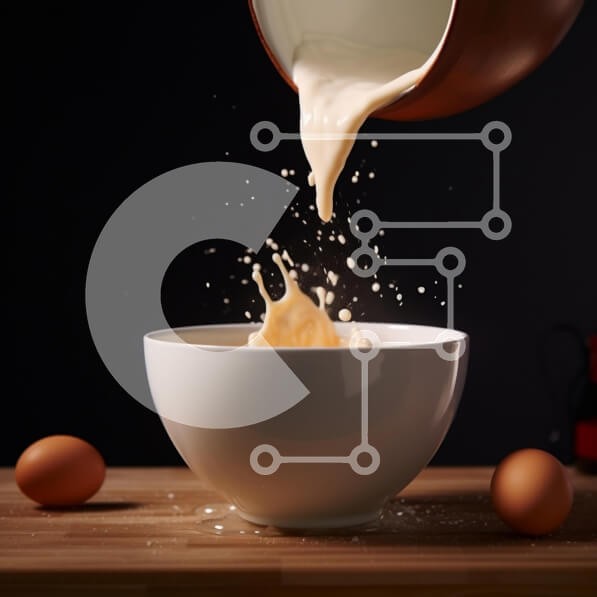 Υπάρχει δυνατότητα προσωποποίησης με δική σας φωτογραφία και προσαρμογής διαστάσεων κατόπιν παραγγελίας. Το συγεκεριμενο puzzle παρουσιαζει Η εικόνα δείχνει ένα λευκό μπολ με γάλα να χύνεται μέσα σε αυτό, συνοδευόμενο από δύο αυγά που ακουμπούν πάνω από το μπολ. Ένα κουτάλι είναι ορατό, υποδηλώνοντας την ανάμειξη γάλακτος και αυγών. Στο τραπέζι φαίνονται επίσης διάφορα σκεύη, φλιτζάνια και ένα κουτί αυγών. Ένα μο