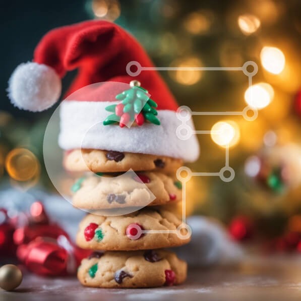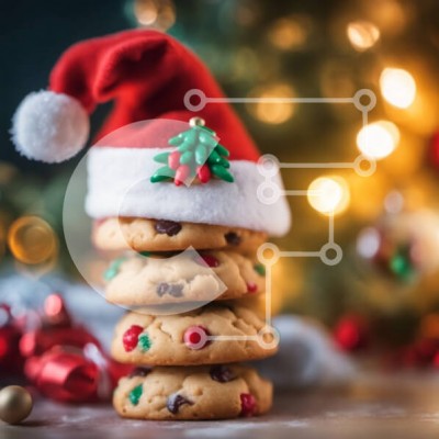 Υπάρχει δυνατότητα προσωποποίησης με δική σας φωτογραφία και προσαρμογής διαστάσεων κατόπιν παραγγελίας. Το συγεκεριμενο puzzle παρουσιαζει Αυτή η εικόνα παρουσιάζει μια στοίβα χριστουγεννιάτικα μπισκότα στολισμένα με ένα καπέλο Άγιου Βασίλη. Τα μπισκότα είναι διακοσμημένα με κομματάκια σοκολάτας και διατίθενται σε διάφορα σχήματα και χρώματα, όπως κόκκινο, πράσινο, κίτρινο και μπλε. Το σκηνικό ενισχύεται με χριστ