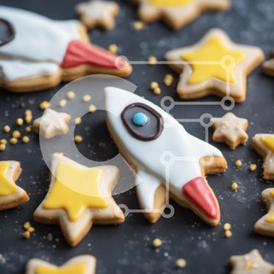 Υπάρχει δυνατότητα προσωποποίησης με δική σας φωτογραφία και προσαρμογής διαστάσεων κατόπιν παραγγελίας. Το συγεκεριμενο puzzle παρουσιαζει Αυτή η εικόνα παρουσιάζει μια ομάδα από μπισκότα διακοσμημένα με αστέρια, ρουκέτες και άλλες διακοσμήσεις με θέμα το διάστημα. Τα μπισκότα τοποθετούνται σε μια ημιτελή μαύρη επιφάνεια, δημιουργώντας μια οπτικά ελκυστική αντίθεση. Είναι μια ιδανική επιλογή για να επιδείξετε ή ν
