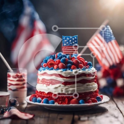 Υπάρχει δυνατότητα προσωποποίησης με δική σας φωτογραφία και προσαρμογής διαστάσεων κατόπιν παραγγελίας. Το συγεκεριμενο puzzle παρουσιαζει Η εικόνα δείχνει μια πατριωτική τούρτα στολισμένη με κόκκινες, λευκές και μπλε διακοσμήσεις, που συμπληρώνεται από μια αμερικανική σημαία τοποθετημένη στην τούρτα. Είναι ιδανικό για γιορτές όπως η 4η Ιουλίου ή παρόμοιες εορταστικές εκδηλώσεις. Γύρω από το κέικ υπάρχουν διάφορα