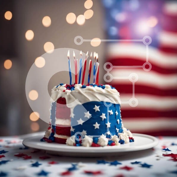 Υπάρχει δυνατότητα προσωποποίησης με δική σας φωτογραφία και προσαρμογής διαστάσεων κατόπιν παραγγελίας. Το συγεκεριμενο puzzle παρουσιαζει Η εικόνα παρουσιάζει μια λευκή τούρτα με κόκκινες, λευκές και μπλε διακοσμήσεις σε σχήμα αμερικανικής σημαίας. Πολλά αναμμένα κεριά κοσμούν την κορυφή της τούρτας, υποδηλώνοντας μια γιορτή, πιθανώς για τις 4 Ιουλίου. Το κέικ εκτίθεται σε πιάτο, έτοιμο για σερβίρισμα ή προβολή.