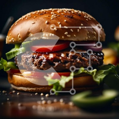 Υπάρχει δυνατότητα προσωποποίησης με δική σας φωτογραφία και προσαρμογής διαστάσεων κατόπιν παραγγελίας. Το συγεκεριμενο puzzle παρουσιαζει Αυτή η κοντινή εικόνα παρουσιάζει ένα χάμπουργκερ με ένα ζουμερό μοσχαρίσιο μπιφτέκι, λιωμένο τυρί, φρέσκο μαρούλι, ώριμη ντομάτα και κέτσαπ. Το χάμπουργκερ σερβίρεται πάνω σε ψωμάκι σουσαμιού και συνοδεύεται από τηγανητές πατάτες. Είναι ένα νόστιμο και χορταστικό γεύμα που