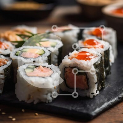 Υπάρχει δυνατότητα προσωποποίησης με δική σας φωτογραφία και προσαρμογής διαστάσεων κατόπιν παραγγελίας. Το συγεκεριμενο puzzle παρουσιαζει Αυτή η εικόνα παρουσιάζει ένα πιάτο σούσι με διάφορα είδη ψαριών και λαχανικών. Το σούσι παρουσιάζεται όμορφα και φαίνεται απίστευτα ορεκτικό. Το πιάτο σερβίρεται με σάλτσα σόγιας και wasabi, προσθέτοντας την αυθεντικότητά του. Αυτή είναι μια τέλεια εικόνα για Puzzle 10x10 cm