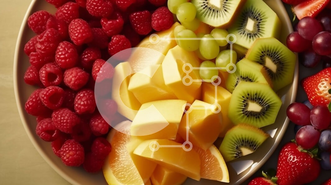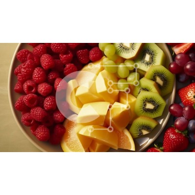 Υπάρχει δυνατότητα προσωποποίησης με δική σας φωτογραφία και προσαρμογής διαστάσεων κατόπιν παραγγελίας. Το συγεκεριμενο puzzle παρουσιαζει Αυτή η εικόνα παρουσιάζει ένα πιάτο με φρέσκα φρούτα, όπως σμέουρα, ακτινίδιο και φράουλες. Τα φρούτα είναι τοποθετημένα με αισθητικά ευχάριστο τρόπο, με τα έντονα χρώματα των μούρων να έρχονται σε αντίθεση με την πράσινη σάρκα του ακτινιδίου. Αυτή η εικόνα είναι ιδανική για χ