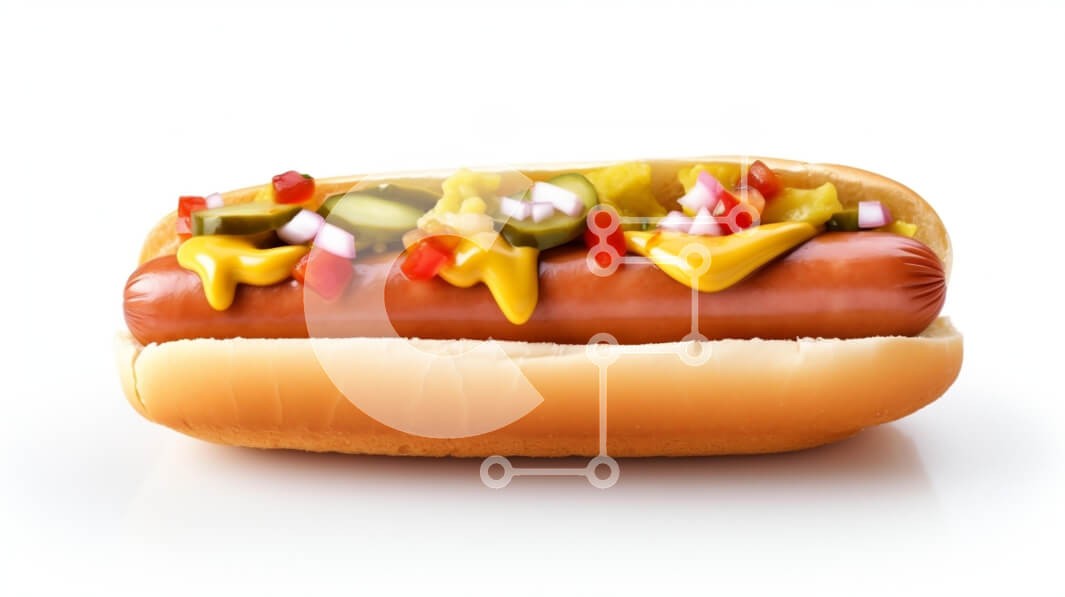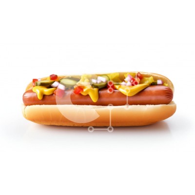 Υπάρχει δυνατότητα προσωποποίησης με δική σας φωτογραφία και προσαρμογής διαστάσεων κατόπιν παραγγελίας. Το συγεκεριμενο puzzle παρουσιαζει Η εικόνα δείχνει ένα νόστιμο χοτ-ντογκ τοποθετημένο σε ένα μαλακό ψωμάκι, με μια ποικιλία από καρυκεύματα, όπως μουστάρδα, κέτσαπ, νοστιμιά και λαχανικά κομμένα σε κύβους, όπως κρεμμύδια και ντομάτες. Το χοτ ντογκ εμφανίζεται σε περίοπτη θέση σε ένα καθαρό λευκό φόντο, τονίζον