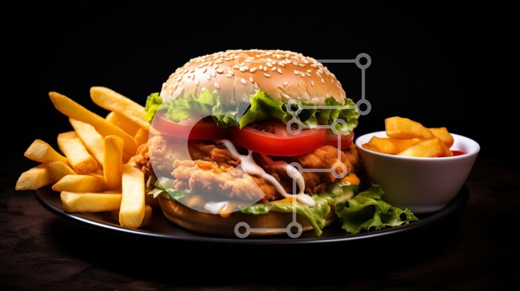 Υπάρχει δυνατότητα προσωποποίησης με δική σας φωτογραφία και προσαρμογής διαστάσεων κατόπιν παραγγελίας. Το συγεκεριμενο puzzle παρουσιαζει Αυτή η εικόνα παρουσιάζει ένα νόστιμο μπιφτέκι με τραγανό τηγανητό κοτόπουλο, στρωμένο με φρέσκο μαρούλι, φέτες ντομάτας και μαγιονέζα, όλα φωλιασμένα σε ένα κουλούρι σουσαμιού. Συνοδεύουν το burger χρυσές τηγανιτές πατάτες και ένα μικρό μπολ κέτσαπ, δημιουργώντας ένα ορεκτι