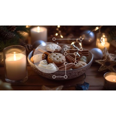 Υπάρχει δυνατότητα προσωποποίησης με δική σας φωτογραφία και προσαρμογής διαστάσεων κατόπιν παραγγελίας. Το συγεκεριμενο puzzle παρουσιαζει Αυτή η εικόνα παρουσιάζει ένα μπολ γεμάτο με μπισκότα, μερικά από τα οποία είναι διακοσμημένα για την περίοδο των γιορτών. Το φόντο δείχνει πολλά κεριά, υποδηλώνοντας ότι μπορεί να γίνονται εορτασμοί κατά τη διάρκεια αυτής της εορταστικής εποχής του χρόνου. Το τραπέζι είναι στ
