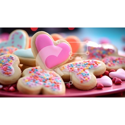 Υπάρχει δυνατότητα προσωποποίησης με δική σας φωτογραφία και προσαρμογής διαστάσεων κατόπιν παραγγελίας. Το συγεκεριμενο puzzle παρουσιαζει Αυτή η εικόνα παρουσιάζει ένα πιάτο με μπισκότα σε σχήμα καρδιάς διακοσμημένα με διάφορα χρώματα, όπως κόκκινο, ροζ, κίτρινο, πράσινο, μπλε, μωβ, πορτοκαλί, μαύρο, λευκό και καφέ. Τα μπισκότα είναι διακοσμημένα με ψεκασμούς και άλλα διακοσμητικά στοιχεία, καθιστώντας τα τέλεια