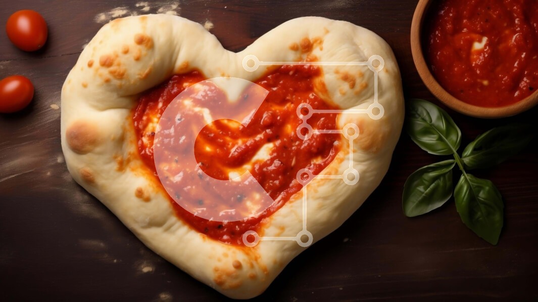 Υπάρχει δυνατότητα προσωποποίησης με δική σας φωτογραφία και προσαρμογής διαστάσεων κατόπιν παραγγελίας. Το συγεκεριμενο puzzle παρουσιαζει Αυτή η εικόνα δείχνει μια πίτσα σε σχήμα καρδιάς με σάλτσα ντομάτας. Τοποθετείται σε ένα τραπέζι μπροστά από δύο μπολ. Η πίτσα είναι πιθανώς σπιτική και μπορεί να σερβιριστεί ως ορεκτικό ή σνακ. Άλλα συστατικά όπως οι ντομάτες, ο βασιλικός και το ελαιόλαδο μπορεί επίσης να υπά