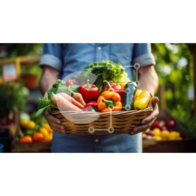 Υπάρχει δυνατότητα προσωποποίησης με δική σας φωτογραφία και προσαρμογής διαστάσεων κατόπιν παραγγελίας. Το συγεκεριμενο puzzle παρουσιαζει Αυτή η εικόνα απεικονίζει έναν άνδρα να κρατά ένα ανοιχτό καλάθι γεμάτο με διάφορα λαχανικά, όπως καρότα, ντομάτες, αγγούρια, μπρόκολο, κουνουπίδι, λάχανο, μαρούλι, σέλινο, μαϊντανός, μέντα, βασιλικός, κόλιαντρο, κρεμμύδι, σκόρδο, πατάτες, σκουός, παντζάρι, πράσινα φασόλια, λε