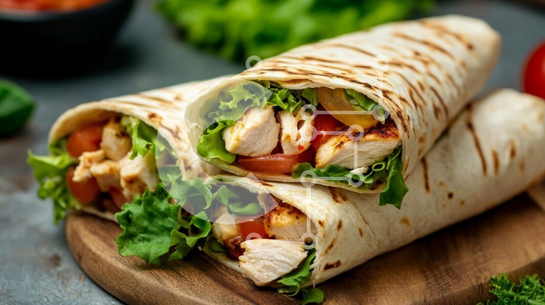 Υπάρχει δυνατότητα προσωποποίησης με δική σας φωτογραφία και προσαρμογής διαστάσεων κατόπιν παραγγελίας. Το συγεκεριμενο puzzle παρουσιαζει Αυτή η εικόνα παρουσιάζει δύο υπέροχα περιτυλίγματα γεμάτα με ψητό κοτόπουλο, φρέσκο μαρούλι και ντομάτες, τακτοποιημένα σε μια ξύλινη σανίδα κοπής. Τα περιτυλίγματα, φτιαγμένα από πλακέ ψωμάκια, έχουν ένα χρυσοκαφέ μοτίβο σημάδι γκριλ που προσθέτει υφή και ελκυστικότητα. Γύ