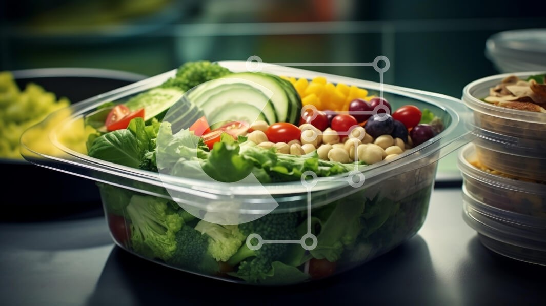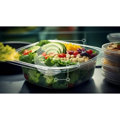 Υπάρχει δυνατότητα προσωποποίησης με δική σας φωτογραφία και προσαρμογής διαστάσεων κατόπιν παραγγελίας. Το συγεκεριμενο puzzle παρουσιαζει Η εικόνα παρουσιάζει ένα διαφανές πλαστικό δοχείο γεμάτο με διάφορα είδη λαχανικών, όπως μαρούλι, ντομάτες, αγγούρια και καρότα. Υπάρχουν επίσης πολλά μικρά μπολ στο τραπέζι, τα οποία θα μπορούσαν να χρησιμοποιηθούν για την αποθήκευση άλλων ειδών διατροφής, όπως πατατάκια ή κρ