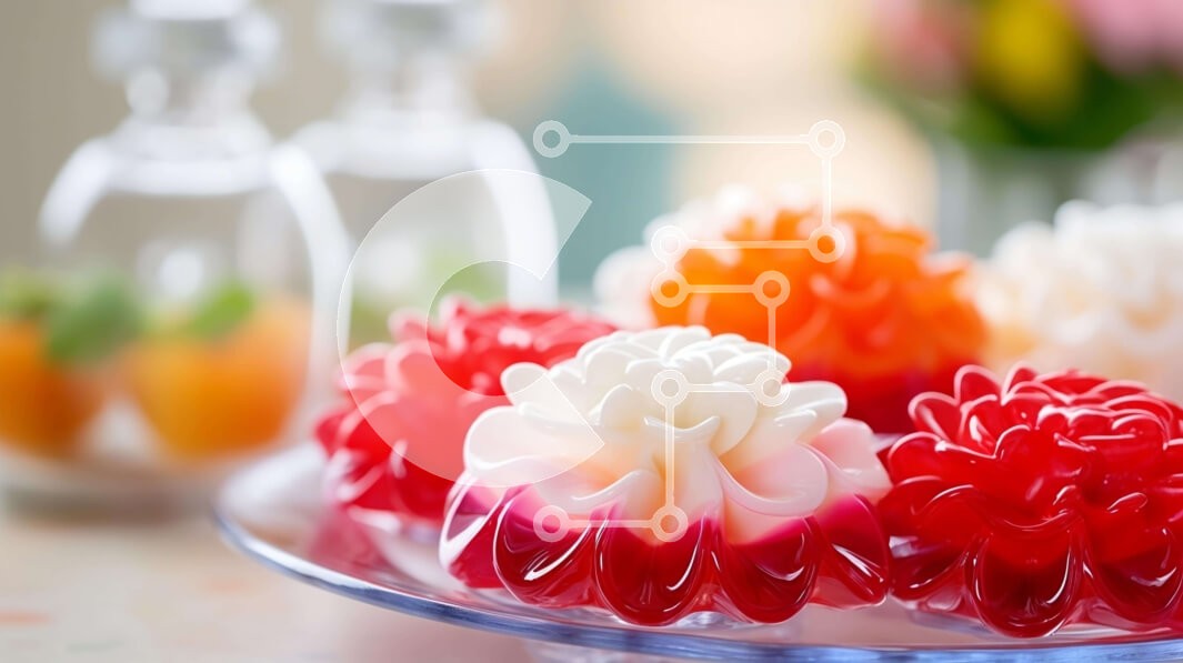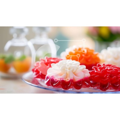 Υπάρχει δυνατότητα προσωποποίησης με δική σας φωτογραφία και προσαρμογής διαστάσεων κατόπιν παραγγελίας. Το συγεκεριμενο puzzle παρουσιαζει Η εικόνα δείχνει ένα διαφανές γυάλινο πιάτο διακοσμημένο με μια ποικιλία από πολύχρωμα επιδόρπια ζελέ σε διάφορα σχήματα και μεγέθη. Τα ζωντανά ζελέ, όπως το κόκκινο, το λευκό και το κίτρινο, δημιουργούν μια οπτικά ελκυστική εμφάνιση. Επιπλέον, ένα μπουκάλι νερό είναι τοποθετη