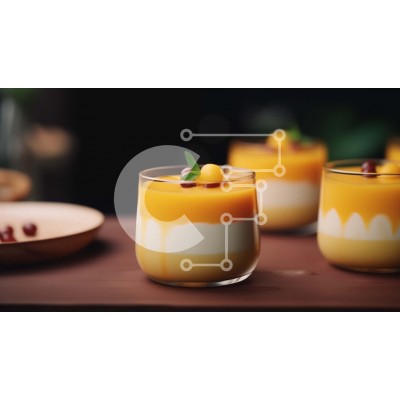 Υπάρχει δυνατότητα προσωποποίησης με δική σας φωτογραφία και προσαρμογής διαστάσεων κατόπιν παραγγελίας. Το συγεκεριμενο puzzle παρουσιαζει Αυτή η εικόνα παρουσιάζει τρία ποτήρια επιδόρπιο με γεύση μάνγκο. Το γλυκό παρουσιάζεται σε κομψά γυάλινα μπολ, τα οποία μπορούν να χρησιμοποιηθούν για να σερβίρετε ή να απολαύσετε το γλυκό. Το πιάτο φαίνεται να είναι φρεσκοφτιαγμένο, χωρίς σημάδια συντηρητικών ή πρόσθετων. Εί