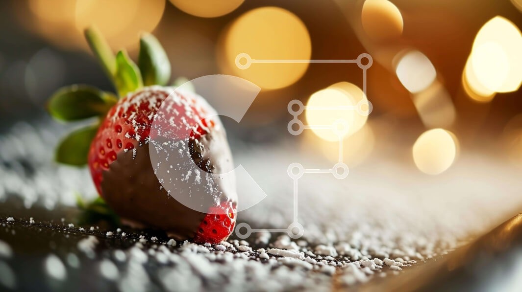 Υπάρχει δυνατότητα προσωποποίησης με δική σας φωτογραφία και προσαρμογής διαστάσεων κατόπιν παραγγελίας. Το συγεκεριμενο puzzle παρουσιαζει Αυτή η εικόνα παρουσιάζει μια φράουλα καλυμμένη με σοκολάτα πασπαλισμένη με ζάχαρη άχνη, τοποθετημένη σε ένα τραπέζι στολισμένο με πολύχρωμα φώτα και σχέδια που μοιάζουν με bokeh. Η παρουσίαση προτείνει ότι θα μπορούσε να χρησιμεύσει ως ορεκτικό ή επιδόρπιο, προσθέτοντας ευελι