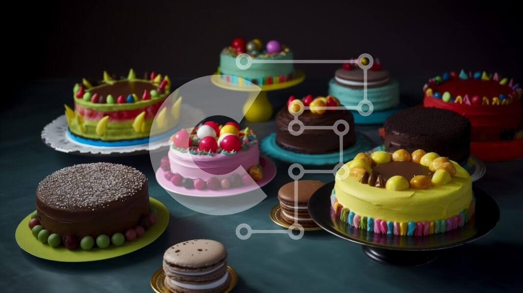 Υπάρχει δυνατότητα προσωποποίησης με δική σας φωτογραφία και προσαρμογής διαστάσεων κατόπιν παραγγελίας. Το συγεκεριμενο puzzle παρουσιαζει Αυτή η εικόνα παρουσιάζει μια ομάδα από πολύχρωμες τούρτες γενεθλίων σε ένα τραπέζι, διακοσμημένα με διάφορα χρώματα και σχέδια, όπως πασπαλίσματα, γλάσο και σοκολάτα. Ο φωτισμός είναι χαμηλός, δημιουργώντας μια ζεστή και εορταστική ατμόσφαιρα. Πιάτα και χαρτοπετσέτες είναι επ