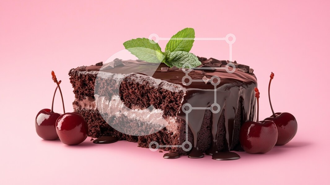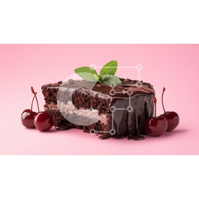 Υπάρχει δυνατότητα προσωποποίησης με δική σας φωτογραφία και προσαρμογής διαστάσεων κατόπιν παραγγελίας. Το συγεκεριμενο puzzle παρουσιαζει Αυτή η εικόνα παρουσιάζει ένα νόστιμο κέικ σοκολάτας σε ροζ φόντο. Το κέικ είναι πλούσια παγωμένο με μαύρη σοκολάτα και γαρνίρεται με ένα κλαδάκι μέντας. Γύρω από το κέικ τακτοποιούνται ζουμερά κεράσια, προσθέτοντας ένα ποπ χρώμα και φρεσκάδα στη σκηνή. Οι στρώσεις του κέικ εί
