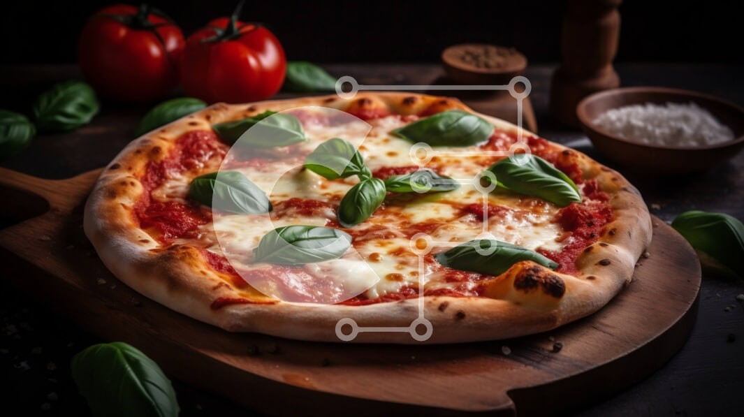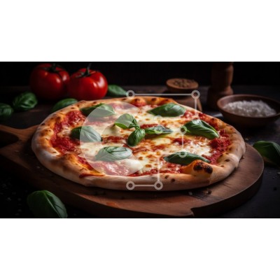 Υπάρχει δυνατότητα προσωποποίησης με δική σας φωτογραφία και προσαρμογής διαστάσεων κατόπιν παραγγελίας. Το συγεκεριμενο puzzle παρουσιαζει Αυτή η εικόνα παρουσιάζει ένα ξύλο κοπής με μια φρεσκοψημένη πίτσα πάνω του. Η πίτσα έχει τραγανή κρούστα και ολοκληρώνεται με τυρί μοτσαρέλα, φρέσκα φύλλα βασιλικού και ντομάτες σε κύβους. Διάφορα βότανα και μπαχαρικά όπως ρίγανη, θυμάρι και δεντρολίβανο περιβάλλουν την πίτσα