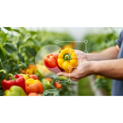 Υπάρχει δυνατότητα προσωποποίησης με δική σας φωτογραφία και προσαρμογής διαστάσεων κατόπιν παραγγελίας. Το συγεκεριμενο puzzle παρουσιαζει Αυτή η εικόνα απεικονίζει έναν άνδρα που κρατά πολύχρωμες πιπεριές στα χέρια του. Οι πιπεριές φαίνεται να είναι φρέσκες και ζωντανές, πιθανώς συλλεγμένες από κήπο ή αγρόκτημα. Το άτομο μπορεί να ασχολείται με τη γεωργία ή την καλλιέργεια θερμοκηπίου. Η σκηνή δείχνει την ομορφι