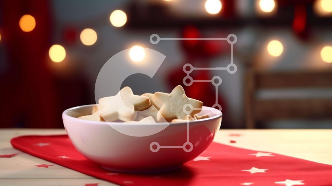 Υπάρχει δυνατότητα προσωποποίησης με δική σας φωτογραφία και προσαρμογής διαστάσεων κατόπιν παραγγελίας. Το συγεκεριμενο puzzle παρουσιαζει Αυτή η εικόνα δείχνει ένα λευκό μπολ γεμάτο με μπισκότα σε σχήμα αστεριού πάνω από ένα διακοσμητικό κόκκινο τραπεζομάντιλο. Τα μπισκότα φαίνονται φρεσκοψημένα και έτοιμα για απόλαυση. Το τραπέζι είναι στολισμένο με πολλά φωτάκια, προσθέτοντας στη γιορτινή ατμόσφαιρα. Χαρίστε σ