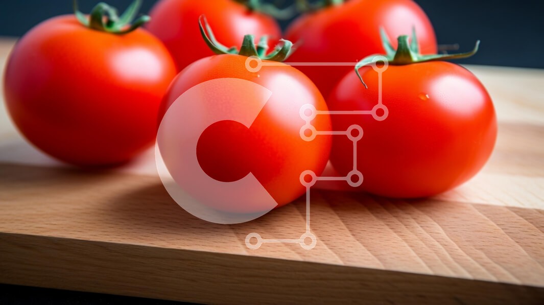 Υπάρχει δυνατότητα προσωποποίησης με δική σας φωτογραφία και προσαρμογής διαστάσεων κατόπιν παραγγελίας. Το συγεκεριμενο puzzle παρουσιαζει Η εικόνα παρουσιάζει μια κοντινή άποψη πέντε φωτεινών κόκκινων ντοματών τοποθετημένων σε ξύλινο ξύλο κοπής. Οι ντομάτες έχουν γυαλιστερή επιφάνεια, αναδεικνύοντας τη φρεσκάδα και την ωριμότητά τους. Το φόντο είναι σκούρο, παρέχοντας μια έντονη αντίθεση με το ζωηρό κόκκινο των