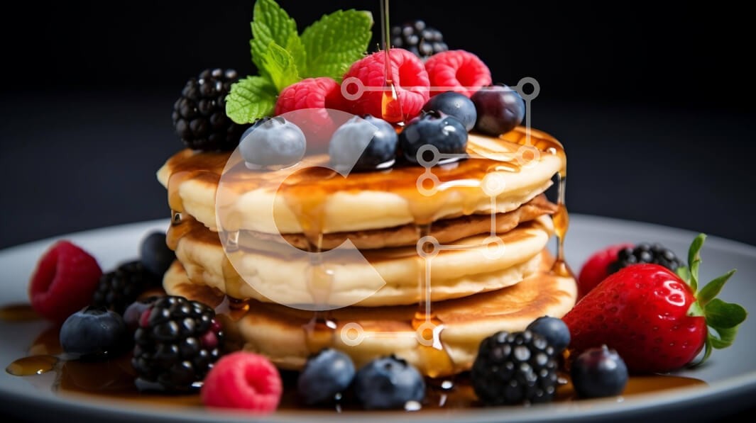 Υπάρχει δυνατότητα προσωποποίησης με δική σας φωτογραφία και προσαρμογής διαστάσεων κατόπιν παραγγελίας. Το συγεκεριμενο puzzle παρουσιαζει Αυτή η εικόνα παρουσιάζει μια στοίβα από τηγανίτες με φρέσκα μούρα και σιρόπι. Οι τηγανίτες είναι υπέροχα ψημένες και στοιβάζονται ψηλά, ενώ το σιρόπι περιχύνεται από πάνω τους, δημιουργώντας μια πεντανόστιμη και νόστιμη παρουσίαση. Η προσθήκη φύλλων μέντας προσθέτει μια νότα