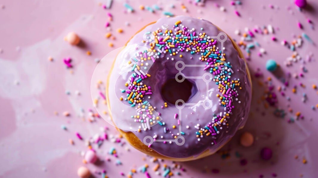 Υπάρχει δυνατότητα προσωποποίησης με δική σας φωτογραφία και προσαρμογής διαστάσεων κατόπιν παραγγελίας. Το συγεκεριμενο puzzle παρουσιαζει Αυτή η εικόνα παρουσιάζει ένα λαχταριστό μωβ ντόνατ με πολύχρωμα ψεκάσματα τοποθετημένα πάνω σε ροζ φόντο. Το ντόνατ περιβάλλεται από μικρές, πολύχρωμες καραμέλες, ενισχύοντας την οπτική του γοητεία. Αιχμαλωτίζει τη χαρά και την ευχαρίστηση της απόλαυσης σε ένα νόστιμο γλυκό.