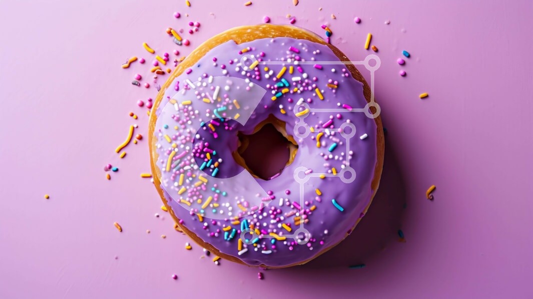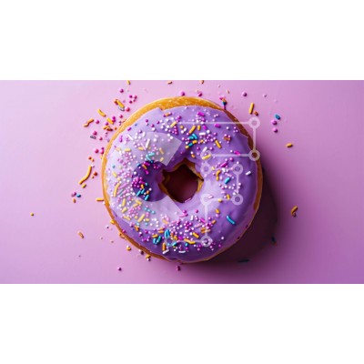 Υπάρχει δυνατότητα προσωποποίησης με δική σας φωτογραφία και προσαρμογής διαστάσεων κατόπιν παραγγελίας. Το συγεκεριμενο puzzle παρουσιαζει Αυτή η εικόνα δείχνει ένα απολαυστικό ντόνατ καλυμμένο με μωβ πασπαλίσματα, τοποθετημένο πάνω σε ροζ φόντο. Το γλάσο στο ντόνατ στολίζεται με πολλαπλές μικρές συστάδες μπλε και μοβ λάμψεις. Είναι μια οπτικά ελκυστική και δελεαστική απόλαυση για κάθε λάτρη του φαγητού. Ένα μον