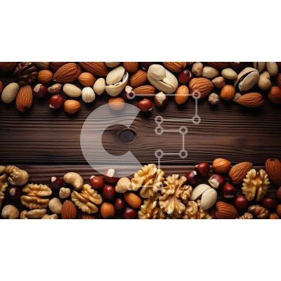Υπάρχει δυνατότητα προσωποποίησης με δική σας φωτογραφία και προσαρμογής διαστάσεων κατόπιν παραγγελίας. Το συγεκεριμενο puzzle παρουσιαζει Αυτή η εικόνα παρουσιάζει μια ποικιλία ξηρών καρπών, συμπεριλαμβανομένων αμύγδαλων, φουντουκιών και καρυδιών, διατεταγμένα σε διαφορετικά σχήματα και μεγέθη σε ξύλινο φόντο. Η σύνθεση παρέχει οπτικό ενδιαφέρον με την απόσταση μεταξύ των παξιμαδιών. Είναι μια τέλεια αναπαράστασ