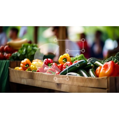 Υπάρχει δυνατότητα προσωποποίησης με δική σας φωτογραφία και προσαρμογής διαστάσεων κατόπιν παραγγελίας. Το συγεκεριμενο puzzle παρουσιαζει Η εικόνα παρουσιάζει μια ποικιλία από φρέσκα λαχανικά, όπως ντομάτες, αγγούρια και πιπεριές, τοποθετημένα σε ξύλινα κουτιά. Πολλά άτομα φαίνονται να στέκονται γύρω από την οθόνη, υποδεικνύοντας ότι είναι μέρος μιας υπαίθριας αγοράς ή μιας αγοράς αγροτών. Η ποικιλία περιλαμβάνε
