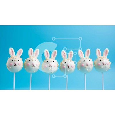 Υπάρχει δυνατότητα προσωποποίησης με δική σας φωτογραφία και προσαρμογής διαστάσεων κατόπιν παραγγελίας. Το συγεκεριμενο puzzle παρουσιαζει Αυτή η εικόνα παρουσιάζει μια σειρά από κέικ pops με λευκά πρόσωπα κουνελιού τοποθετημένα σε ξυλάκια, σε μπλε φόντο. Η διάταξη προτείνει ένα πάρτι ή γιορτή με θέμα το Πάσχα, αλλά θα μπορούσαν επίσης να χρησιμοποιηθούν ως διακοσμητικά για γάμους ή οικογενειακές συγκεντρώσεις.
