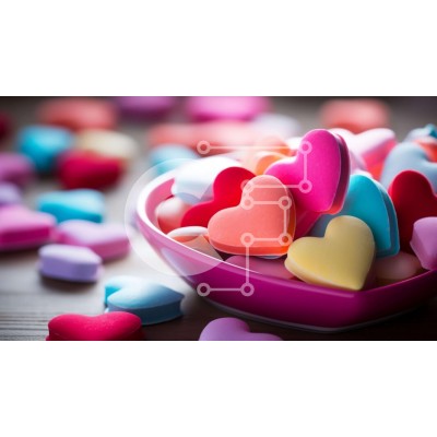 Υπάρχει δυνατότητα προσωποποίησης με δική σας φωτογραφία και προσαρμογής διαστάσεων κατόπιν παραγγελίας. Το συγεκεριμενο puzzle παρουσιαζει Αυτή η εικόνα δείχνει ένα ροζ μπολ γεμάτο με μια ποικιλία από καραμέλες σε σχήμα καρδιάς. Οι καραμέλες είναι πολύχρωμες, με αποχρώσεις του κόκκινου, του ροζ και του λευκού. Μερικές από τις καρδιές είναι μεγαλύτερες από άλλες, υποδηλώνοντας πιθανώς ότι έχουν κοπεί σε διάφορα με
