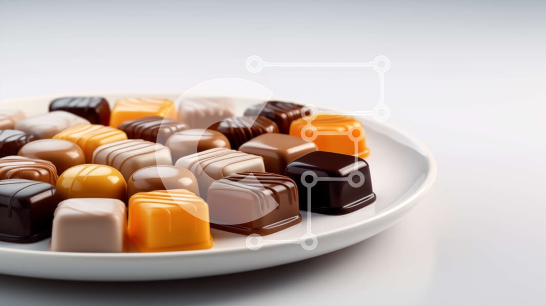 Υπάρχει δυνατότητα προσωποποίησης με δική σας φωτογραφία και προσαρμογής διαστάσεων κατόπιν παραγγελίας. Το συγεκεριμενο puzzle παρουσιαζει Αυτή η εικόνα δείχνει ένα λευκό πιάτο γεμάτο με μια ποικιλία από καραμέλες, όπως σοκολάτες, ξηρούς καρπούς και καραμέλες. Οι καραμέλες είναι διατεταγμένες με ελκυστικό τρόπο, με μερικές ομαδοποιημένες και άλλες απλωμένες σε όλο το πιάτο. Τα χρώματα και τα σχήματα των ζαχαρωτών