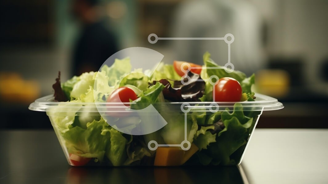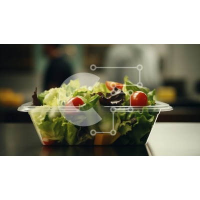 Υπάρχει δυνατότητα προσωποποίησης με δική σας φωτογραφία και προσαρμογής διαστάσεων κατόπιν παραγγελίας. Το συγεκεριμενο puzzle παρουσιαζει Η εικόνα δείχνει ένα διαφανές πλαστικό δοχείο γεμάτο με σαλάτα σε έναν πάγκο βιομηχανικού στυλ, με ανθρώπους στο φόντο. Μεταφέρει ένα περιβάλλον εστιατορίου όπου άτομα είτε εργάζονται είτε απολαμβάνουν ένα γεύμα. Παρατηρείται ένα άτομο να στέκεται κοντά στο δοχείο, πιθανώς να
