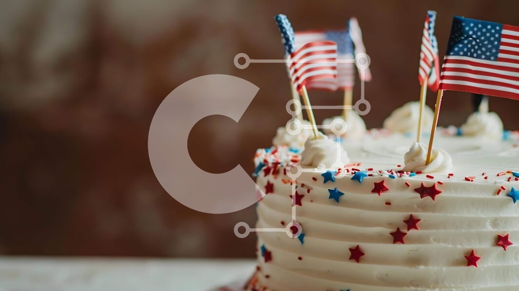 Υπάρχει δυνατότητα προσωποποίησης με δική σας φωτογραφία και προσαρμογής διαστάσεων κατόπιν παραγγελίας. Το συγεκεριμενο puzzle παρουσιαζει Η εικόνα δείχνει μια λευκή τούρτα διακοσμημένη με κόκκινες, λευκές και μπλε αμερικανικές σημαίες, στην κορυφή της οποίας φέρουν δύο ξυλάκια βουτυρόκρεμα. Η τούρτα φαίνεται να είναι προετοιμασμένη για μια εκδήλωση ή γιορτή, με μικρές αρκούδες gummi σε σχήμα αστεριού τοποθετημέν