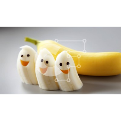 Υπάρχει δυνατότητα προσωποποίησης με δική σας φωτογραφία και προσαρμογής διαστάσεων κατόπιν παραγγελίας. Το συγεκεριμενο puzzle παρουσιαζει Αυτή η κοντινή εικόνα παρουσιάζει τρεις μπανάνες που έχουν κοπεί σε πρόσωπα και έχουν τοποθετηθεί μπροστά από μια μπανάνα. Η άγουρη μπανάνα υποδηλώνει ότι έχει καθίσει για λίγο στο τραπέζι. Επιπλέον, υπάρχουν κομμάτια λευκού χαρτιού τοποθετημένα πάνω από τις φέτες μπανάνας, υπ