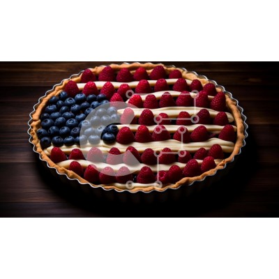 Υπάρχει δυνατότητα προσωποποίησης με δική σας φωτογραφία και προσαρμογής διαστάσεων κατόπιν παραγγελίας. Το συγεκεριμενο puzzle παρουσιαζει Η εικόνα παρουσιάζει μια πίτα διακοσμημένη σε σχήμα αμερικανικής σημαίας, με κόκκινα, λευκά και μπλε μούρα στην κορυφή. Η πίτα περιχύνεται με σαντιγί και πασπαλίζεται με ζάχαρη άχνη, που προσθέτει στην πατριωτική αίσθηση του γλυκού. Υπάρχουν πολλά σμέουρα διάσπαρτα γύρω από τη