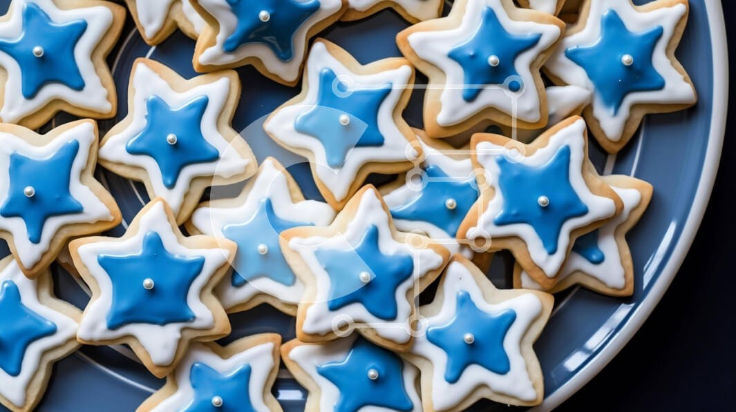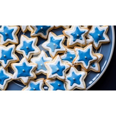 Υπάρχει δυνατότητα προσωποποίησης με δική σας φωτογραφία και προσαρμογής διαστάσεων κατόπιν παραγγελίας. Το συγεκεριμενο puzzle παρουσιαζει Αυτή η εικόνα δείχνει ένα πιάτο με μπισκότα σε σχήμα αστεριού διακοσμημένα με μπλε και λευκά αστέρια. Τα μπισκότα είναι τοποθετημένα σε μια στοίβα, με διαφορετικά σχήματα, όπως κύκλους, τρίγωνα, καρδιές και τετράγωνα. Είναι μια τέλεια απόλαυση για κάθε περίσταση ή γιορτή. Ένα