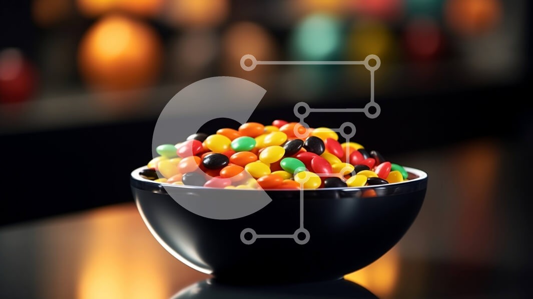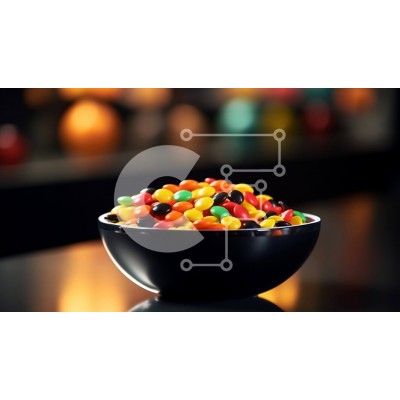 Υπάρχει δυνατότητα προσωποποίησης με δική σας φωτογραφία και προσαρμογής διαστάσεων κατόπιν παραγγελίας. Το συγεκεριμενο puzzle παρουσιαζει Αυτή η εικόνα παρουσιάζει ένα μπολ γεμάτο με πολύχρωμα κομμάτια καραμέλας. Η καραμέλα αποτελείται από διάφορα ζωντανά χρώματα, όπως κόκκινο, πορτοκαλί, κίτρινο, πράσινο, μπλε και μωβ. Η καραμέλα είναι διάσπαρτη σε όλο το μπολ, το οποίο έχει γυαλιστερό μαύρο φινίρισμα. Το φόντο