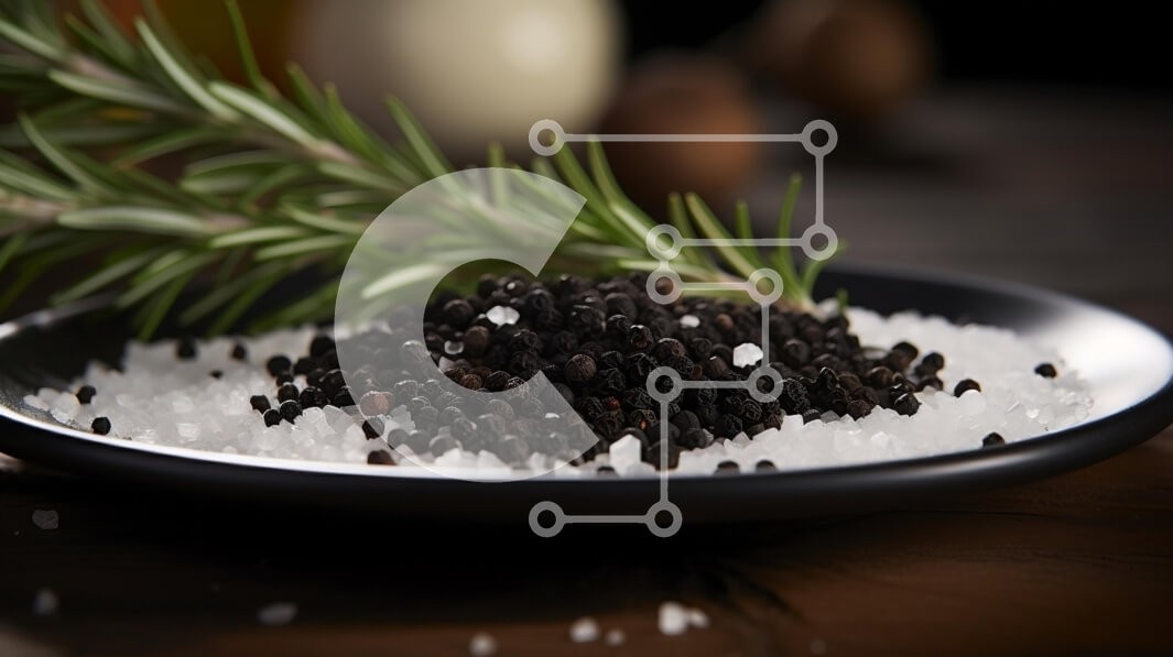 Υπάρχει δυνατότητα προσωποποίησης με δική σας φωτογραφία και προσαρμογής διαστάσεων κατόπιν παραγγελίας. Το συγεκεριμενο puzzle παρουσιαζει Η εικόνα δείχνει ένα μαύρο μπολ που περιέχει αλάτι, δεντρολίβανο και κόκκους μαύρου πιπεριού, συνοδευόμενο από ένα μπουκάλι ελαιόλαδο στο τραπέζι. Διάφορα μπουκάλια σε διαφορετικά μεγέθη και σχήματα είναι ορατά στο βάθος, υπονοώντας τις διαφορετικές χρήσεις τους. Ένα μοναδικό