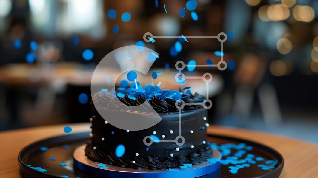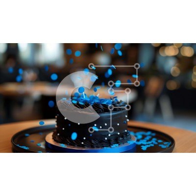 Υπάρχει δυνατότητα προσωποποίησης με δική σας φωτογραφία και προσαρμογής διαστάσεων κατόπιν παραγγελίας. Το συγεκεριμενο puzzle παρουσιαζει Η εικόνα δείχνει μια μαύρη τούρτα με μπλε κομφετί να πέφτει από την κορυφή της. Το κέικ τοποθετείται σε ένα δίσκο οβάλ σχήματος, ο οποίος φαίνεται στο πρώτο πλάνο της εικόνας. Είναι πιθανό ότι η τούρτα έχει σερβιριστεί σε κάποιο είδος γιορτής, καθώς υπάρχουν διάφορα μπλε διακο