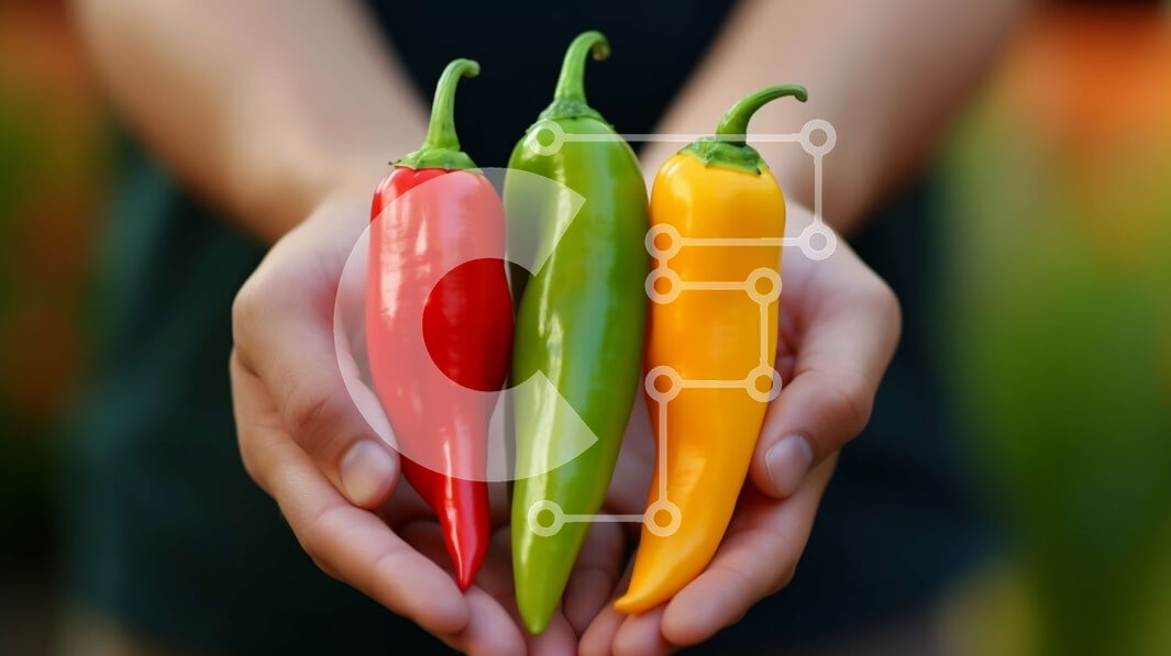 Υπάρχει δυνατότητα προσωποποίησης με δική σας φωτογραφία και προσαρμογής διαστάσεων κατόπιν παραγγελίας. Το συγεκεριμενο puzzle παρουσιαζει Αυτή η εικόνα απεικονίζει ένα άτομο που κρατά τρεις πιπεριές τσίλι - δύο κόκκινες και μία κίτρινη. Το άτομο πιάνει τις πιπεριές από τα κοτσάνια τους και τις εξετάζει με μια περίεργη έκφραση. Το φόντο δείχνει ένα θερμοκήπιο με διάφορα φυτά στο πλαίσιο. Ένα μοναδικό puzzle που
