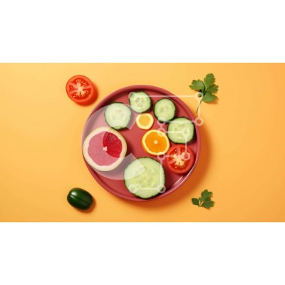Υπάρχει δυνατότητα προσωποποίησης με δική σας φωτογραφία και προσαρμογής διαστάσεων κατόπιν παραγγελίας. Το συγεκεριμενο puzzle παρουσιαζει Αυτή η εικόνα δείχνει ένα ροζ πιάτο γεμάτο με μια ποικιλία από φρέσκα φρούτα και λαχανικά. Το πιάτο περιέχει αγγούρια, ντομάτες, πορτοκάλια και κόλιαντρο, τα οποία μπορούν να χρησιμοποιηθούν για γαρνίρισμα ή βελτίωση των γεύσεων των γευμάτων. Μεταφέρει μια αίσθηση φρεσκάδας κα