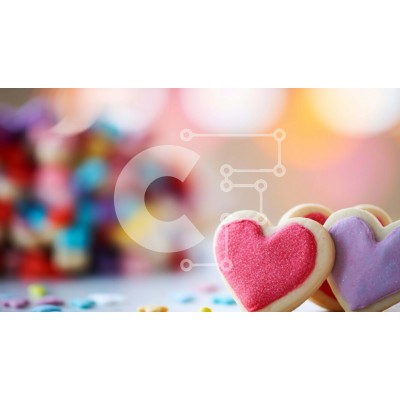 Υπάρχει δυνατότητα προσωποποίησης με δική σας φωτογραφία και προσαρμογής διαστάσεων κατόπιν παραγγελίας. Το συγεκεριμενο puzzle παρουσιαζει Αυτή η εικόνα παρουσιάζει δύο μπισκότα σε σχήμα καρδιάς τοποθετημένα σε ένα τραπέζι μπροστά από πολύχρωμα κομφετί. Τα μπισκότα είναι διακοσμημένα με διαφορετικά χρώματα και σχέδια, προσθέτοντας μια γιορτινή πινελιά. Μικρά κομμάτια καραμέλας είναι επίσης διάσπαρτα γύρω από το τ